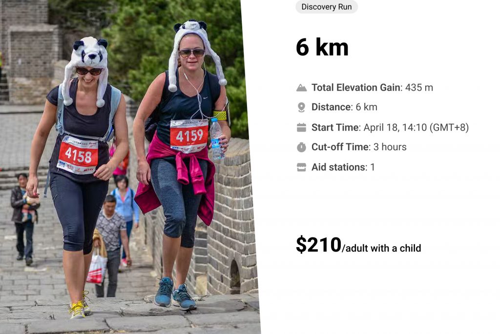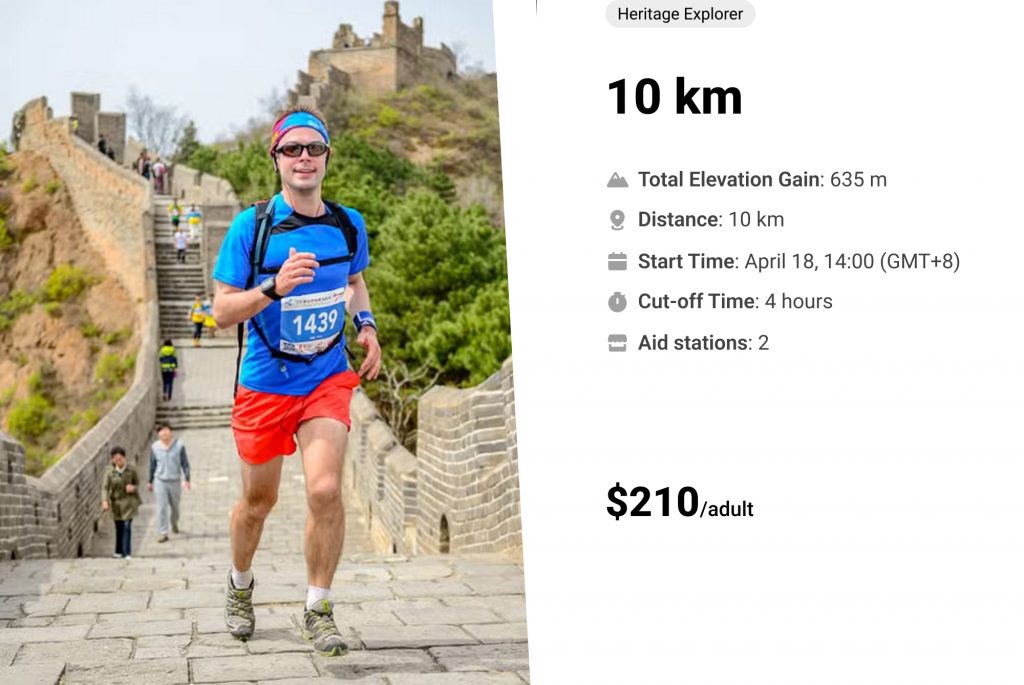 The 10 km and 6 km races start and finish at the Badaling Ancient Great Wall Scenic Area.