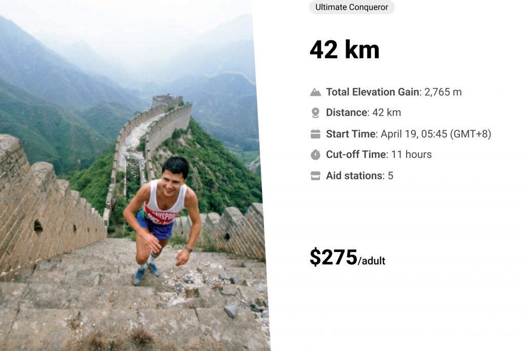 5. Trekking poles are prohibited on the Great Wall sections of the course. Participants must not carve or mark the wall and must not litter. Any violation will result in disqualification. Participants are required to follow cultural heritage protection regulations, practice responsible racing, and refrain from any behavior that may damage the Great Wall.